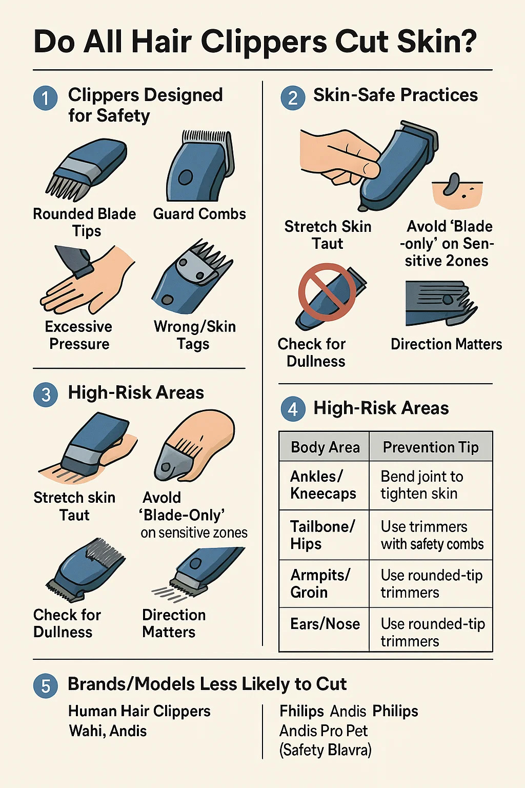 Nu, nu toate mașini de tuns tăiați pielea, dar utilizarea necorespunzătoare, lamele tocite sau defectele de design pot cauza zgârieturi sau iritații. Iată o defalcare detaliată: