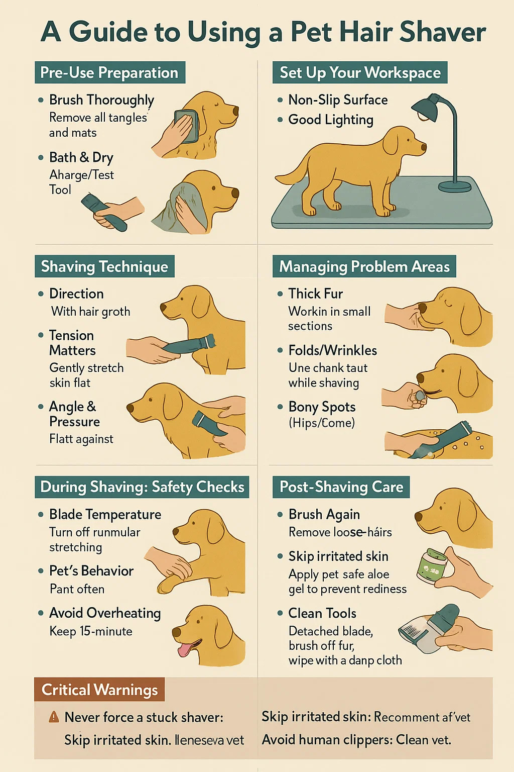 Folosind a Pet de bărbierit În siguranță și eficient necesită pregătire, tehnică și post-îngrijire. Iată un ghid detaliat, pas cu pas: