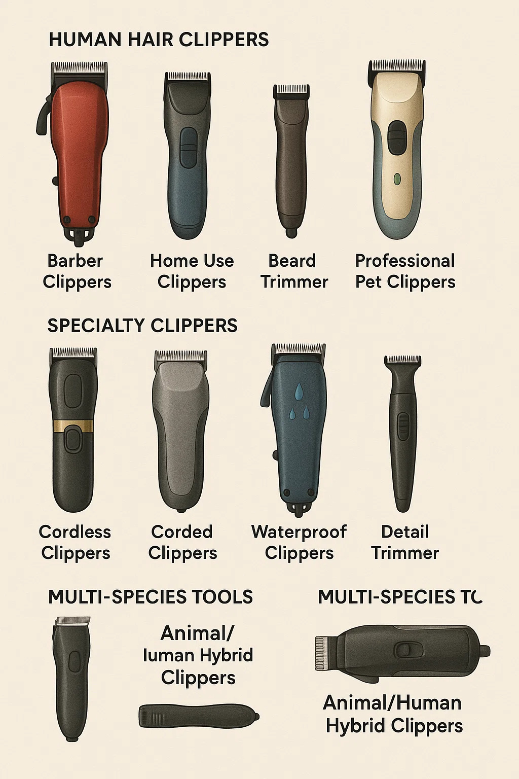 Iată principalele tipuri de Clippers de păr , clasificat în funcție de proiectare și scop: